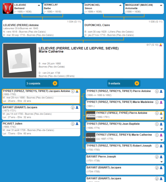 Mariei Catherine LELIEVRE (1668 Busnes- 1738 Busnes)