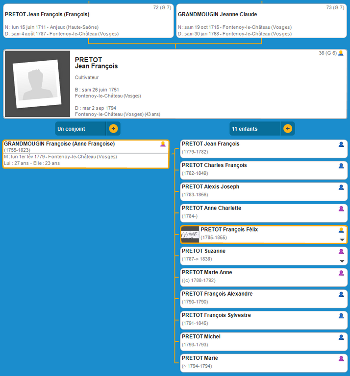 Jean François PRETOT (1751 Fontenoy-Le-Château - 1787 Fontenoy-Le-Château)