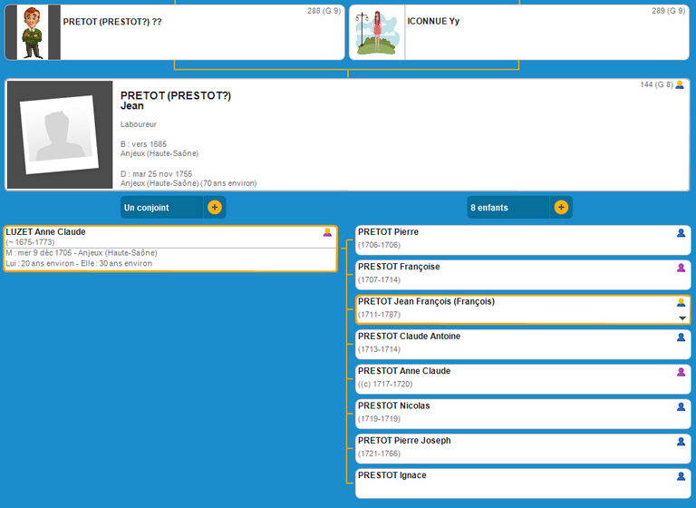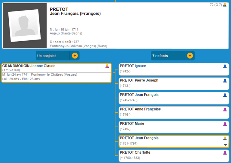 Jean François PRETOT (1711 Anjeux - 1787 Fontenoy-Le-Château)