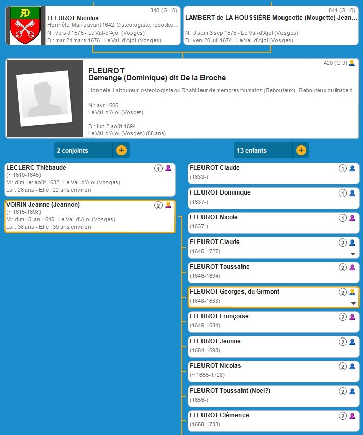 Georges FLEUROT (1648 Le-Val-d'Ajol - 1688 Le-Val-d'Ajol )