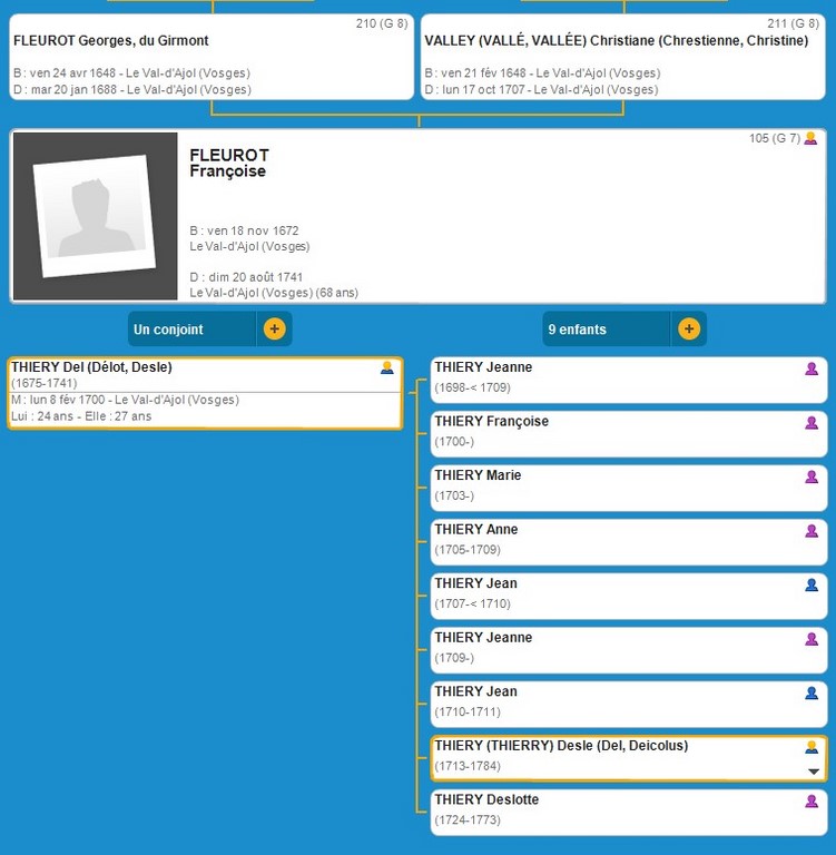 Françoise FLEUROT (1672 Le-Val-d'Ajol - 1741 Le-Val-d'Ajol )