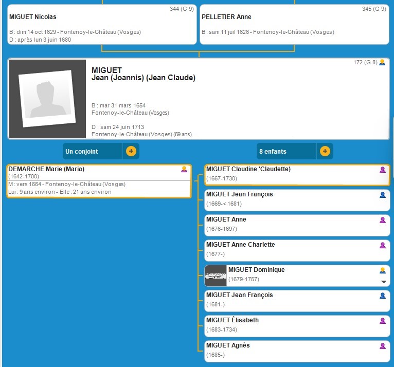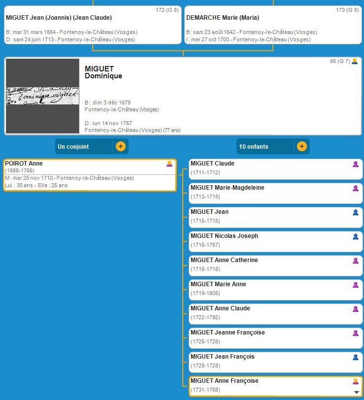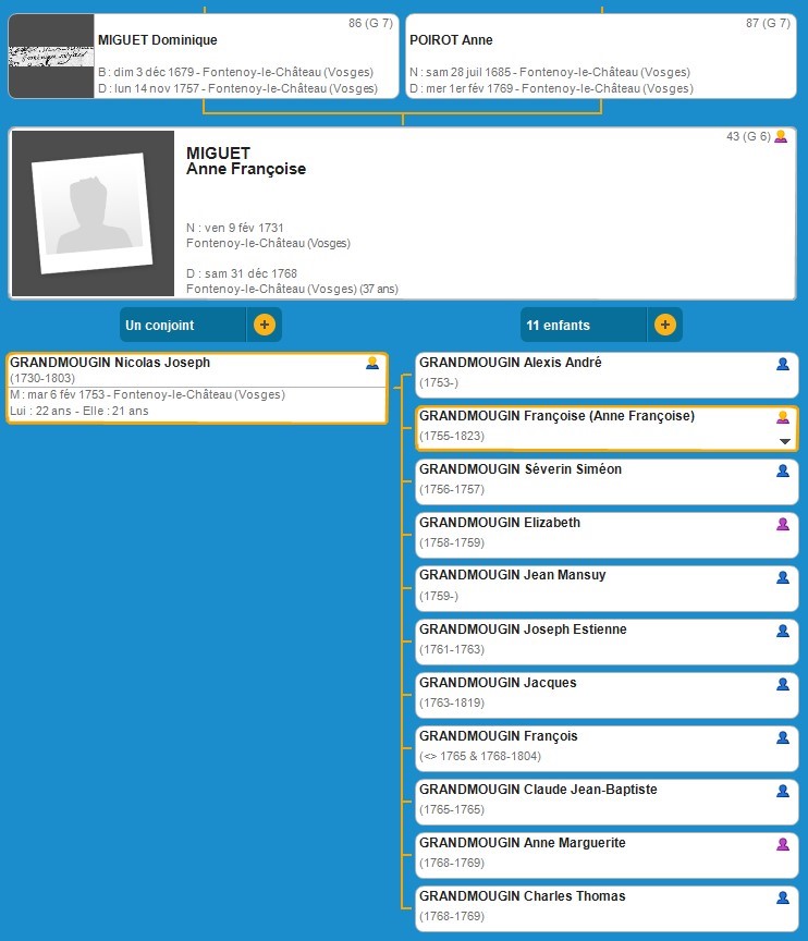 G6 ASCENDANCE DE ANNE FRANCOISE MIGUET