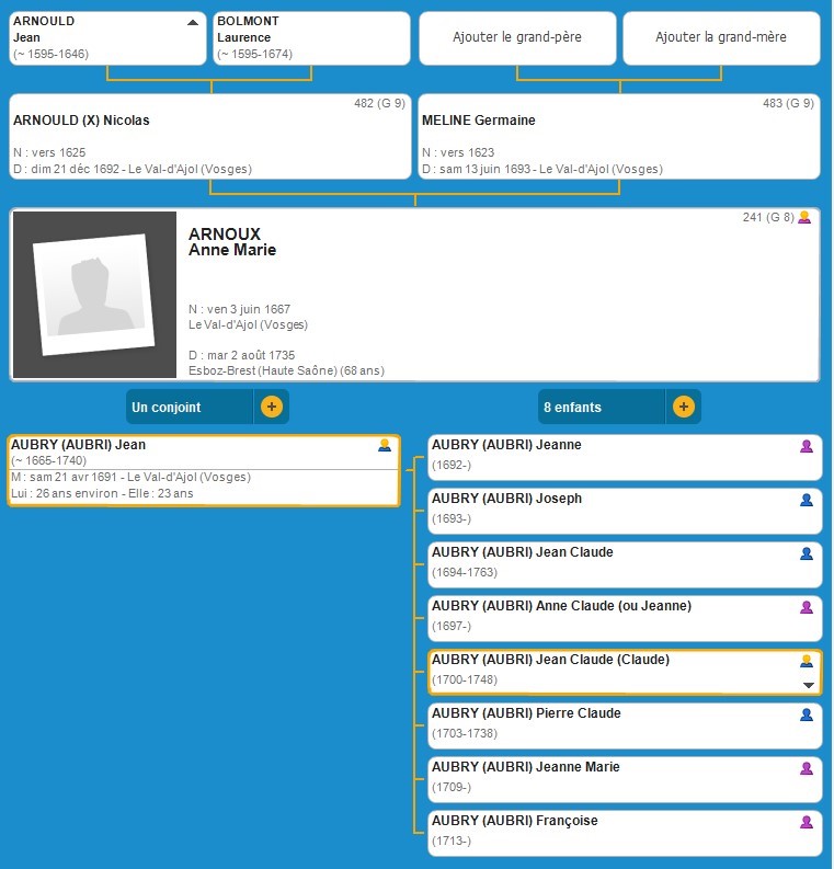 Jean AYBRY(I) (vers 1685 Saint-Bresson- 1674 Le Val d'Ajol)