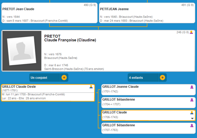 G 8 L'Ascendance de Claude Françoise PRETOT