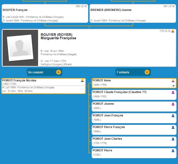 Marguerite Françoise ROUYER (ROYER) (1664 Fontenoy-Le-Château- 1724 Xertigny)