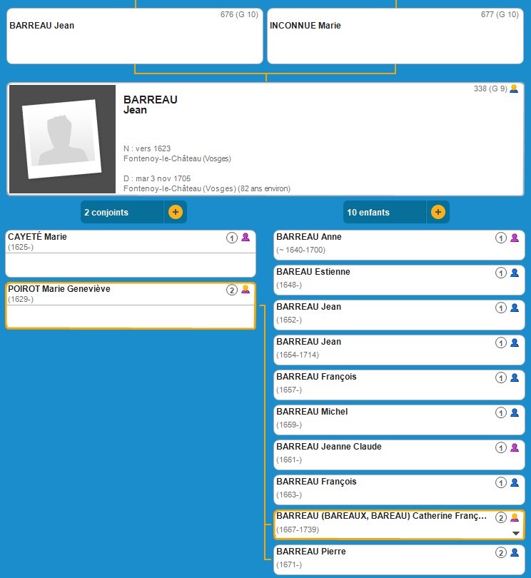 G8 L'ascendance de Catherine Françoise BARREAU (BAREAUX, BAREAU)