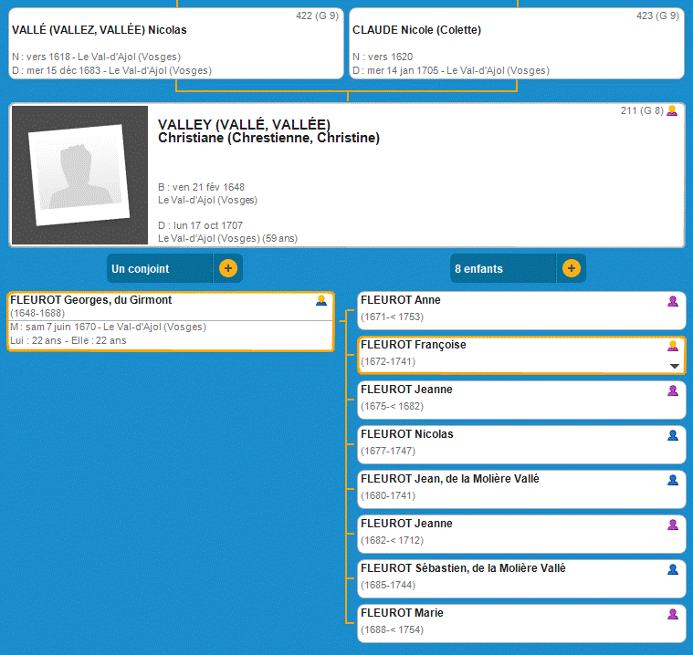 G8 L'ascendance de Christiane (Chrestienne, Christine) VALLEY (VALLÉ, VALLÉE)