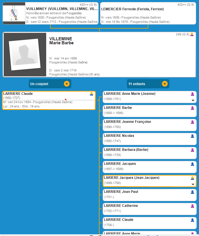 Generation 8 L'Ascendance de Marie Barbe VILLEMINE