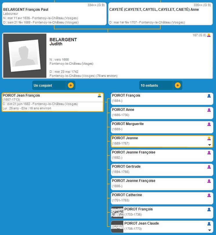 Judith BELARGENT (vers 1666 Fontenoy-Le-Château- 1742 FontenoyLe-Château)