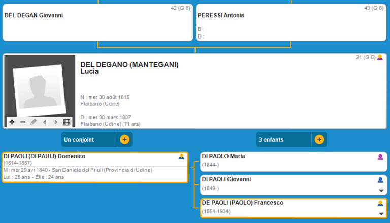 Ascendance de Lucia DEL DEGAN (O)